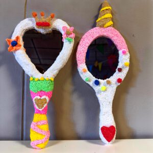 Tijdens dit kinderfeestje ga je twee spiegels versieren met foam klei. Maak de mooiste 3D bloemen, vrolijke bolletjes, of tover er een magische eenhoornspiegel van! Gebruik je fantasie en creëer iets unieks dat helemaal van jou is.