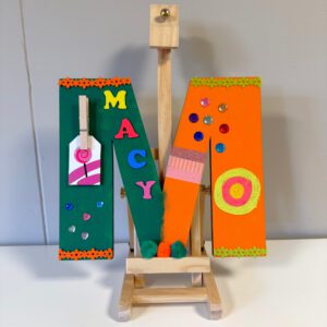 We gaan creatief aan de slag met een grote houten letter! Eerst geven we de letter een mooie kleur met verf, gebruik jouw lievelingskleur of een regenboog van kleuren. Als de verf droog is, begint het echte versieren. Met zachte pompoms, glinsterende glitters, vrolijke bloemen en nog veel meer materialen maken we er een geweldig knutselwerk van. Zo wordt jouw letter uniek en helemaal van jou!