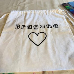 Als de tas bedrukt is, mag je hem ook nog inkleuren met textielstiften. Zo wordt jouw tas echt orgineel.