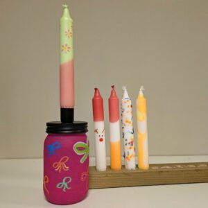 Op het moment dat de kaarsen klaar zijn. Gaan we de kandelaar nog helemaal persoonlijk maken door te tekenen met speciale stiften.